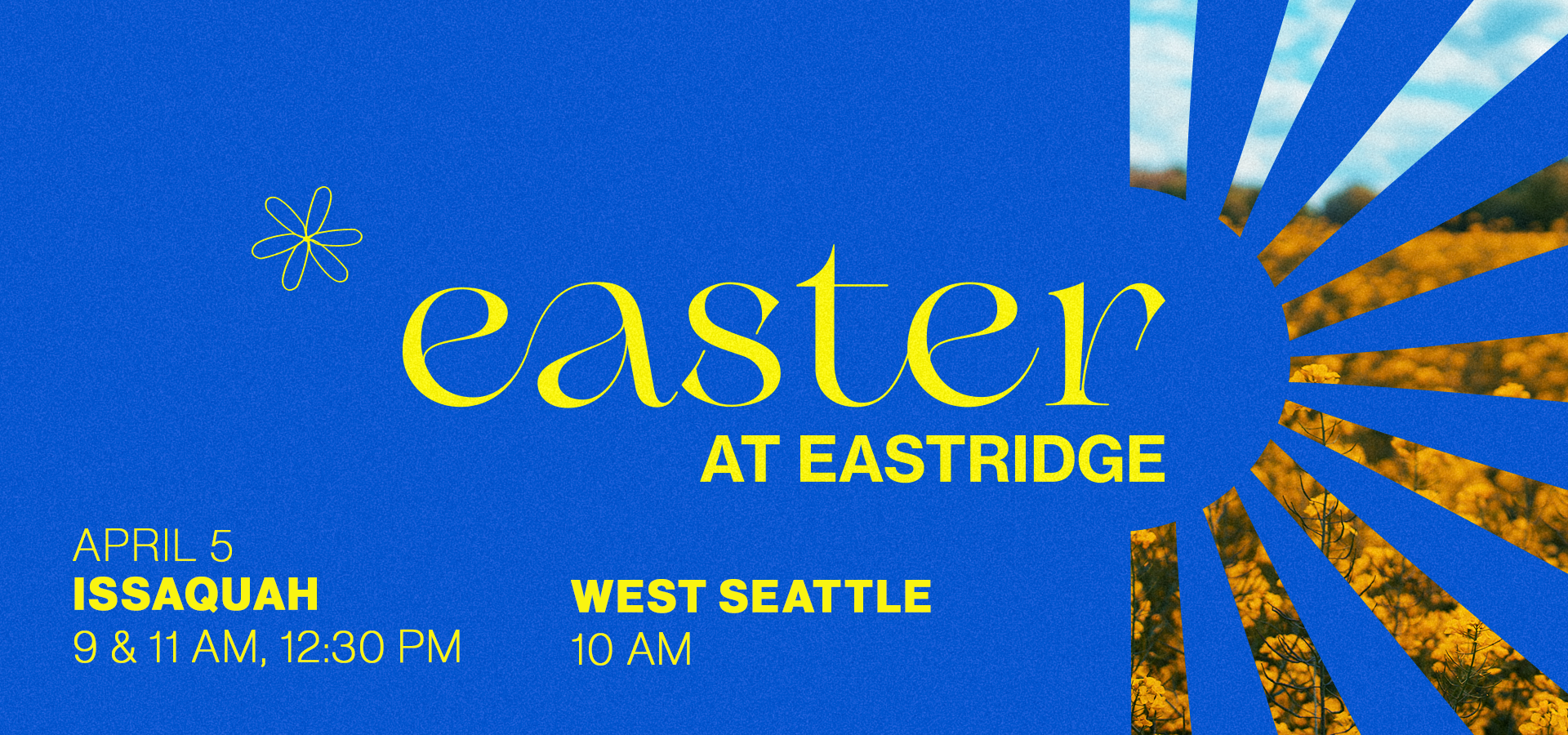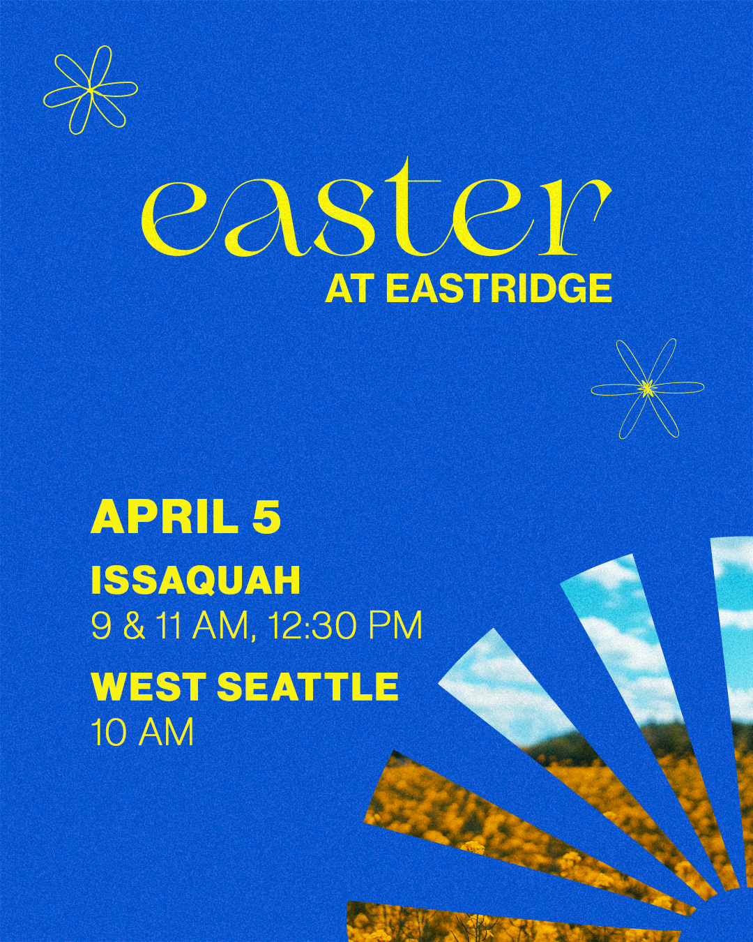If you’re searching for an Easter service, we invite you to join us at 9:00 AM, 11:00 AM, or 12:30 PM at our Issaquah Campus. Our West Seattle Campus service is at 10:00 AM.